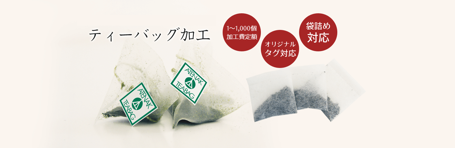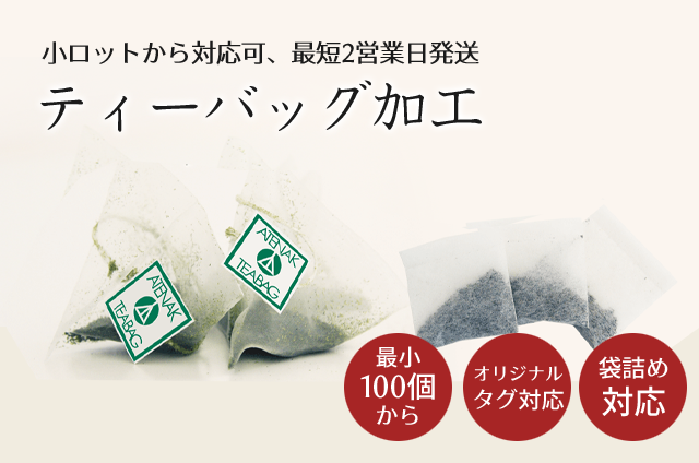 カネタ八木商店では、小ロット 1個から対応可能なBtoB(企業様)向けティーバッグ加工を承っております。 オリジナルタグの対応、クライアント指定袋への窒素充填袋詰め等、柔軟に対応しております。
